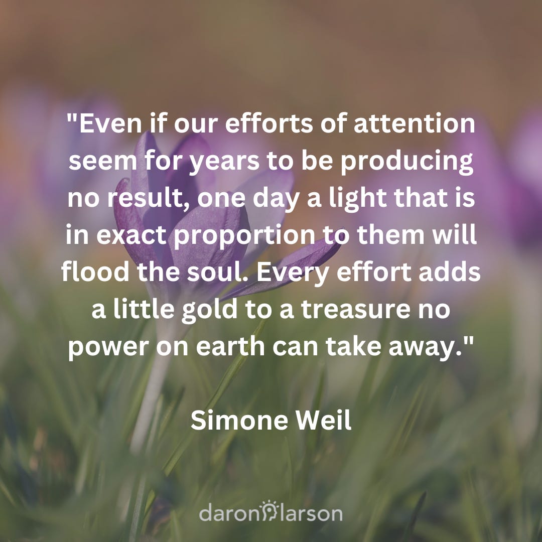 Getting better means noticing more frequently that your imagination has captured your attention—and choosing, in those moments, to look around or listen instead.