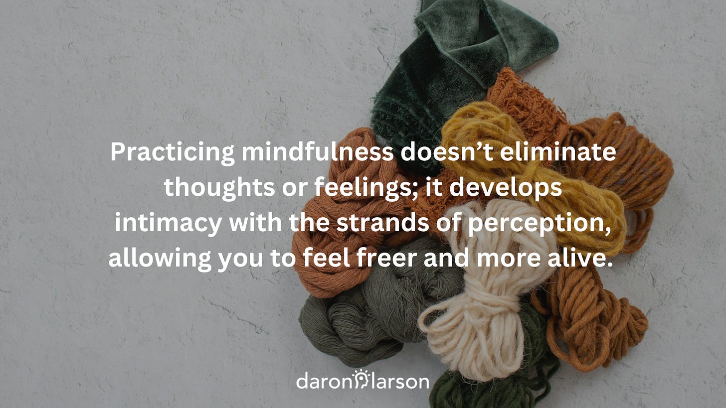 By default, we subconsciously weave words, images, and feelings together to predict, reflect, and learn from our experiences. While we focus on the stories that emerge, the internal weaving process remains largely imperceptible to us. Mindfulness practice helps us untangle the strands of perception to transform the ways we respond to our experiences.